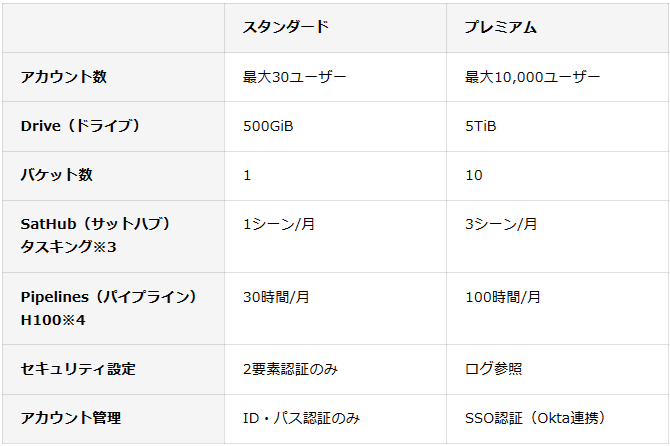 「スタンダード」と「プレミアム」の2プランをご用意しています。また、「Drive(ドライブ)」や「SatHub(サットハブ)」など、一部機能のみのご利用についても個別にご相談を承ります。