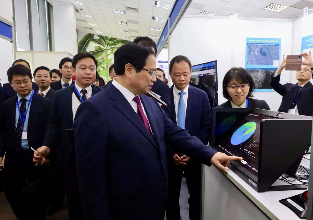 Tellusのブースを視察するベトナムのファム・ミン・チン首相